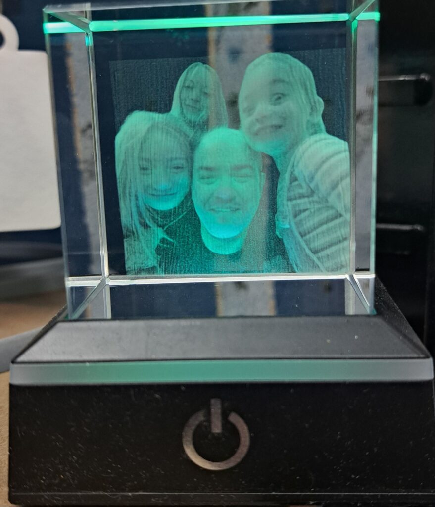 The new laser I have as of November 2025 can engrave inside glass crystal. See below for examples or hop over to the facebook page to see videos and more